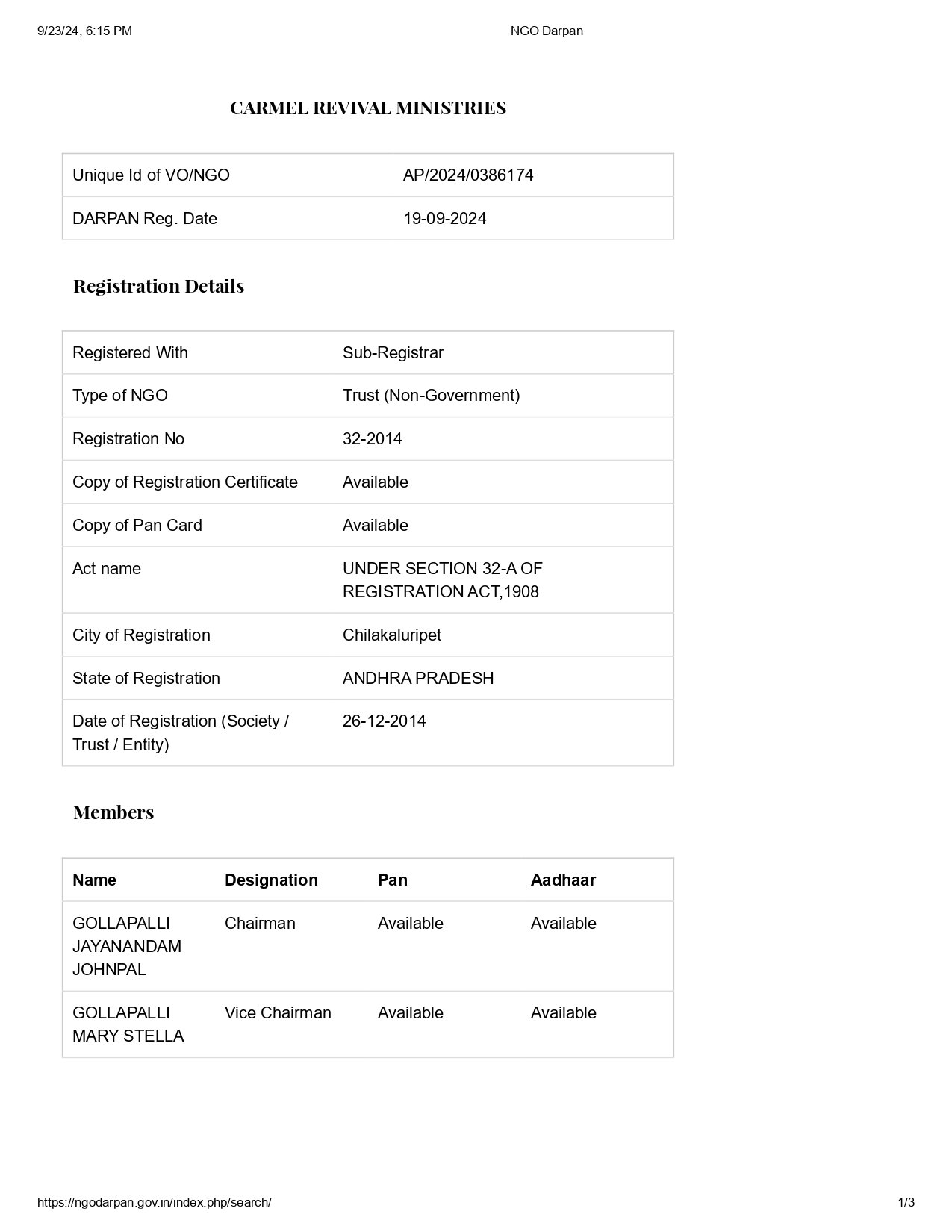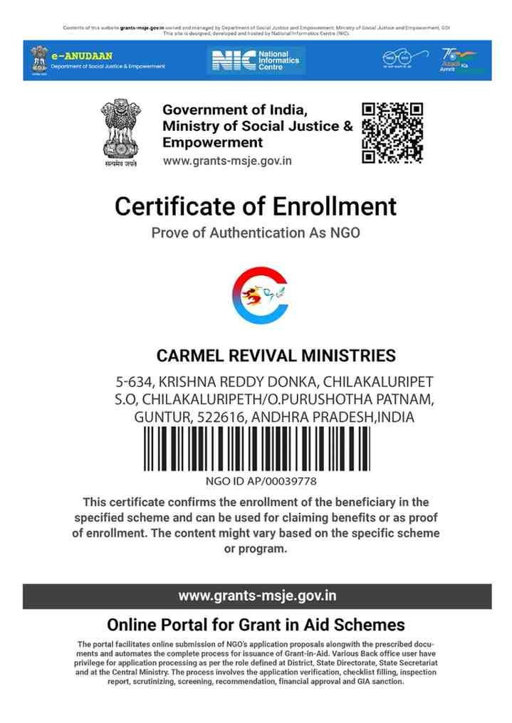 Our organization is led by a visionary leader, Sri. GOLLAPALLI JAYANANDAM JOHNPAL, whose unwavering commitment to our cause has been the driving force behind our success. Established in 2014, since then the organization has been expanding continuously in terms of social and Educational Development and Medical services, Food, and Sheltering for Orphans. It has worked for the promotion of sustainable, equitable, and participatory development, social welfare, and social justice through Programs for social work, the Establishment of Educational Technical and Medical Institutes supportive relief and education to the people, Health services, and other human service through social research and dissemination of socially relevant knowledge, social intervention through training and field action, contribution to social and welfare policy and program at State, National and International levels, over the years, The organization has among others (NGOs, Trusts) thrusts made A significant contribution to planning, action strategies, and Human Resource Development in several areas, ranging from sustainable rural and urban development to education, health, Agriculture, and Human Rights, in all case, the focus has been on the disadvantaged and marginalized section of societies, such as women, children and tribal. At CARMEL REVIVAL MINISTRIES , we envision a world where education is a fundamental right for all. Since our inception in [2014], we have been dedicated to breaking down barriers to education, especially for marginalized and disadvantaged communities. Through our school-building initiatives, scholarship programs, and teacher training, we are working towards creating a brighter future for children and youth, empowering them with the knowledge and skills they need to succeed.